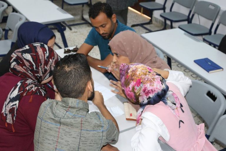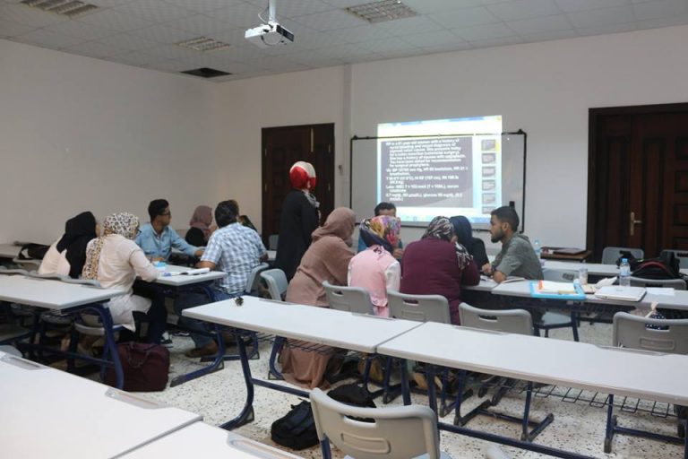 Students at the Faculty of Pharmacy study in a “Team-Based Learning” (TBL), This application is the first of its kind in the Libyan International University. Team based learning is one of the active learning strategies, through their work in small groups, students train students to solve the dilemmas by using the scientific concepts they have acquired through self learning in the pre-attendance stage of the group based learning session. The students showed great satisfaction with this strategy and the level of participation and positive performance and the spirit of cooperation was very high in the first sessions on Saturday, 2018/10/20.