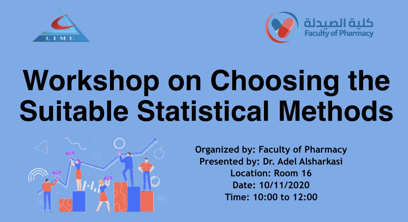 The Faculty of Pharmacy organized, on Tuesday 10th of November 2020, a workshop on choosing the appropriate statistical methods. The workshop was attended by faculty members, tutors and teaching assistants from several faculties form the Libyan International Medical University and from other universities in Benghazi.