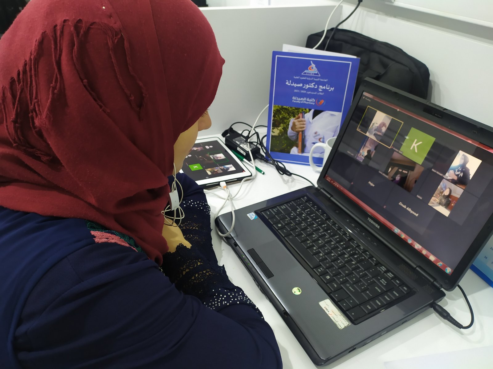 Under the direct supervision of the Examinations and Supervision Committee for the academic year 2019/2020 at the Faculty of Pharmacy, the electronic examinations for all academic years at the Faculty continued as follows: English I & block I entitled: Drug Delivery for the first-year students, Arabic & block V entitled: Immunology for second-year students, block IX entitled: Infectious Diseases & block X entitled: Oncology for third-year students, and block XVI entitled: Eye and Skin Disorders & block XVII entitled: Musculoskeletal Disorders & block XVIII entitled: Life Stages for fourth-year students