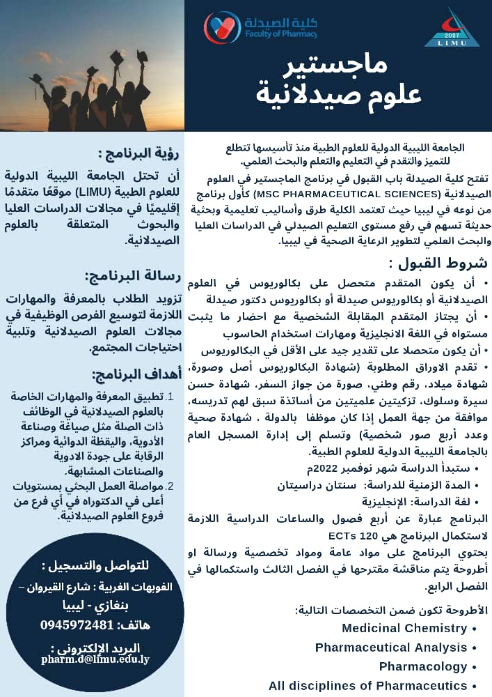 Recruitment Brochure for Postgraduate Program (MSc pharmaceutical Sciences).