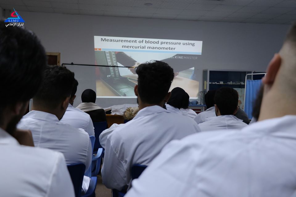 Third year students at the Faculty of Pharmacy received their practical training on how to measure blood pressure in the university’s clinical skills lab. This training is in accordance with the theoretical sessions given to them as part of the requirements of the objectives in the Cardiovascular System and Pulmonary Disorders block.