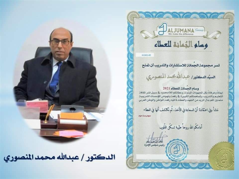 الدكتور عبدالله المنصوري يتقلد وسام الجمانه للعطاء